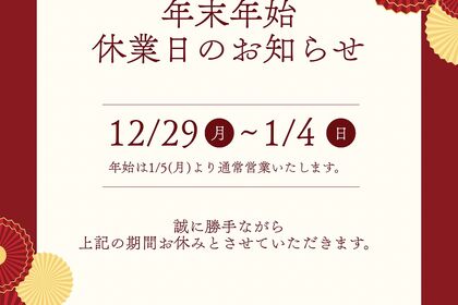• 年末年始の営業日のお知らせ